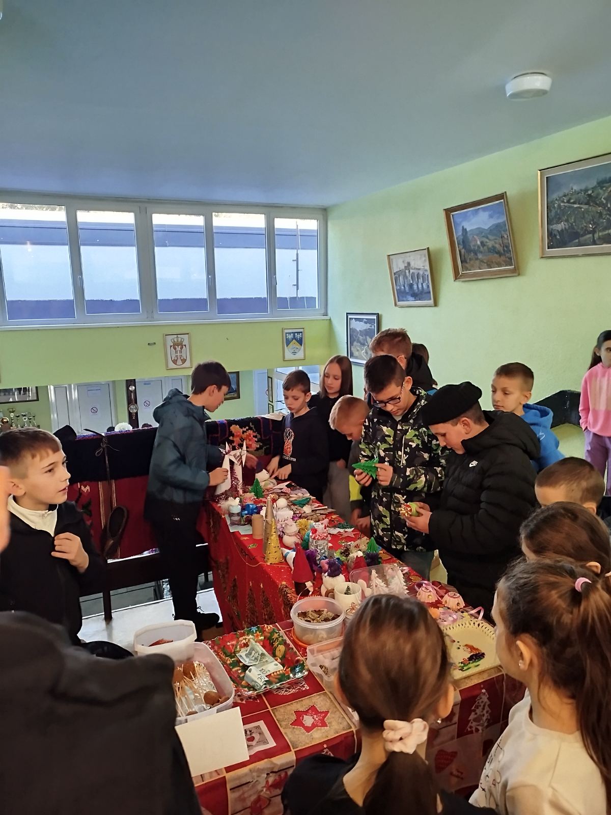 У понедељак 29. 12. у матичној школи организован је Новогодишњи базар и караоке.